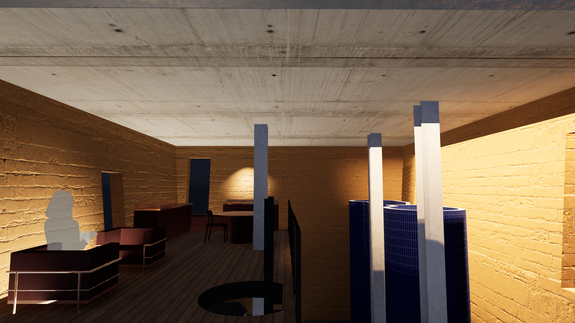 Material references were photographed for later use. The initial concept work was developed as a poster and hung on public display. Software used for this project included Revit and Twinmotion.